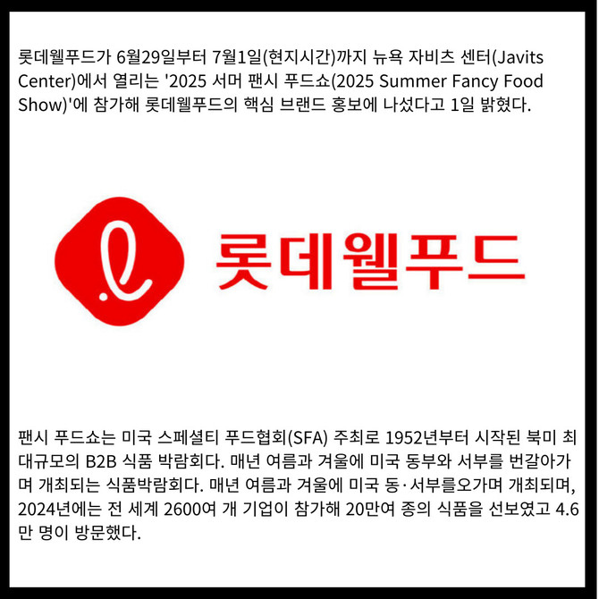 [카드] 롯데웰푸드, 美 최대 식품박람회 '2025 서머 팬시 푸드쇼' 참가