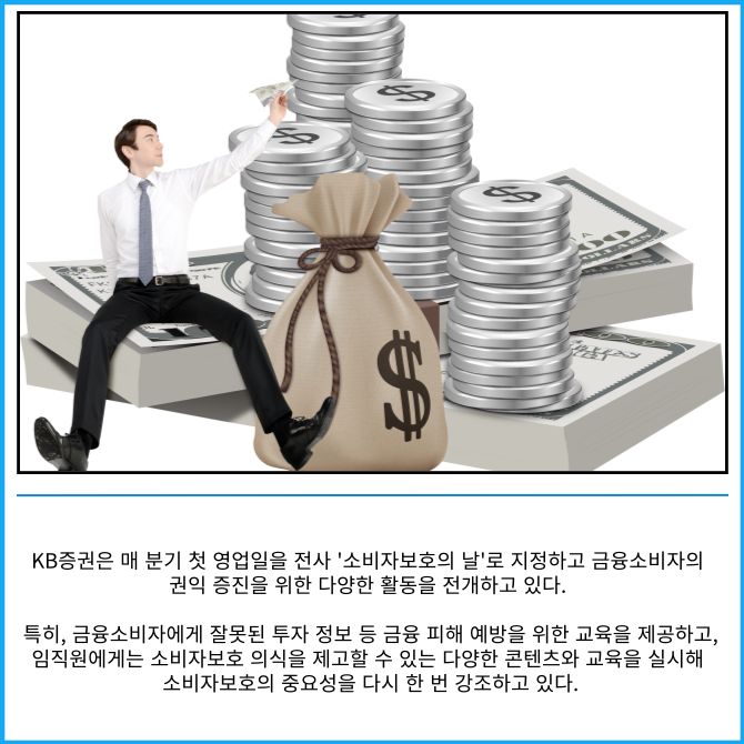 KB증권은 매 분기 첫 영업일을 전사 '소비자보호의 날'로 지정하고 금융소비자의 권익 증진을 위한 다양한 활동을 전개하고 있다.