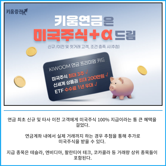 [카드] 키움증권, 연금저축계좌 개설 후 이전하면 미국주식 지급