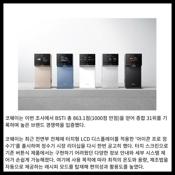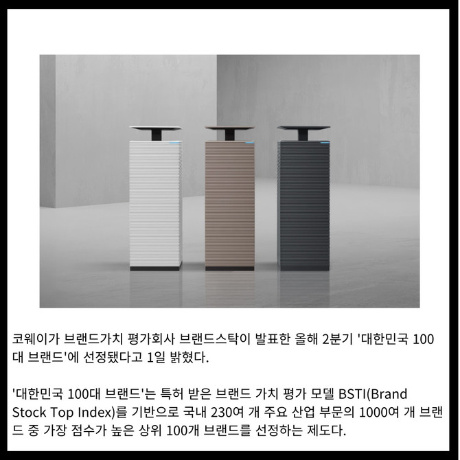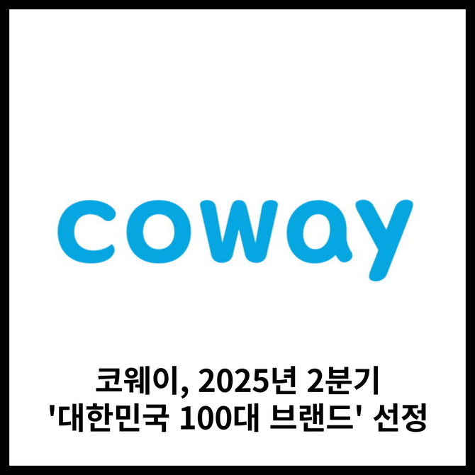[카드] 코웨이, 2025년 2분기 '대한민국 100대 브랜드' 선정