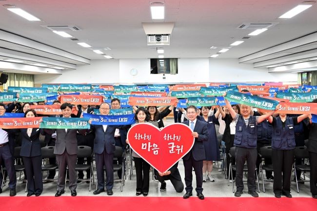 이날 기념식은 '함께한 3년, 함께할 내일'이라는 부제 아래 군위군의 도약을 이끌어 낸 지난 3년 군정 주요 성과를 영상으로 되돌아보고 군정 운영에 헌신해 온 직원들에게 감사의 뜻을 전하는 한편, 향후 군정 방향을 공유하는 자리로 마련됐다.