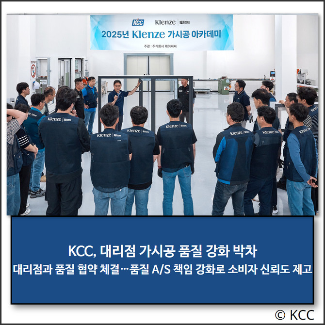 KCC는 최근 프리미엄 하이엔드 창호 브랜드 'Klenze(클렌체)'의 가시공이 가능한 대리점 네트워크인 'Klenze 이맥스 클럽(e-MAX Club)' 회원사를 대상으로 'Klenze 가시공 아카데미'를 진행했다.