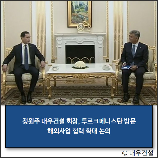 정 회장은 이 밖에 건설·전력·생산담당 부총리 등을 만나 현지 사업 확장을 위한 지원과 협조를 요청했다. 호자무랏 겔디미라보드 금융·경제담당 부총리는 신규 석유화학 플랜트와 가스전 개발 사업에 대우건설의 참여가 원활히 이뤄질 수 있도록 지원하겠다는 의지를 밝힌 것으로 전해졌다.
