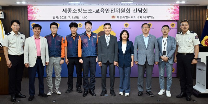 세종시의회 교육안전위원회(위원장 윤지성)는 1일 세종시의회 대회의실에서 세종소방노조 및 소방본부 관계자들과 함께 퇴직 소방공무원의 특수건강진단 지원 방안 마련을 위한 간담회를 개최했다.