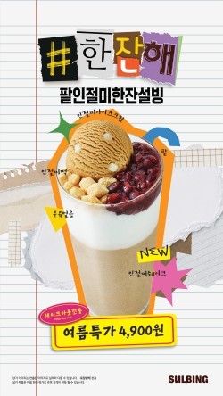설빙은 신메뉴 출시를 기념해 다양한 온·오프라인 이벤트를 마련했다. MZ세대를 중심으로 자신만의 취향과 정체성을 표현하는 '꾸미기' 열풍에 발맞춰, '팥인절미한잔설빙'을 주문한 고객에게는 나만의 컵빙수를 표현할 수 있는 '#한잔해 스티커' 6종을 증정한다.