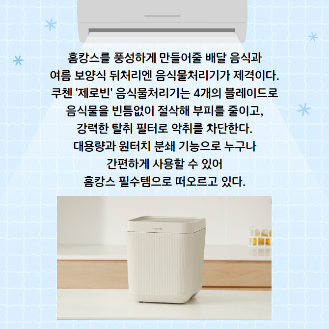 쿠첸 '퓨어슬립 제습기·제로빈 음식물처리기'로 쾌적하게