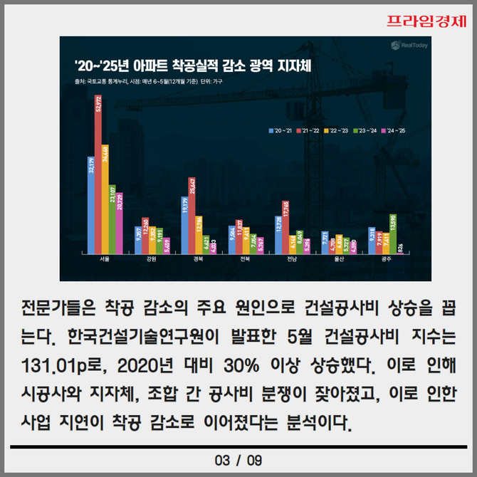 [카드] 최근 1년간 착공 '뚝' 수도권·지방 공급절벽 현실화