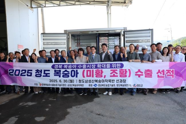 청도군은 지난 30일 삼성산작목반 선과장에서 '2025 청도 복숭아(미황, 조황) 수출 선적식'을 개최했다.