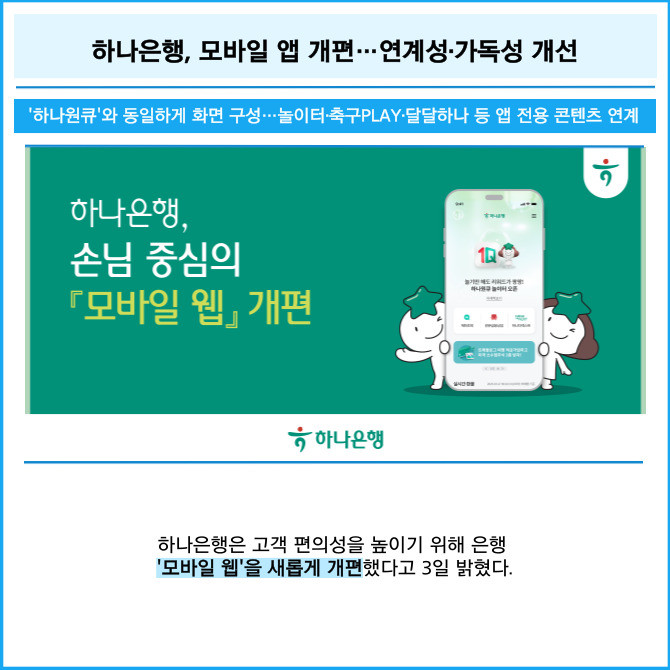 [카드] 하나은행, 모바일 앱 개편…연계성·가독성 개선