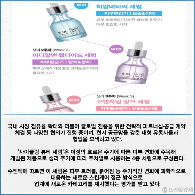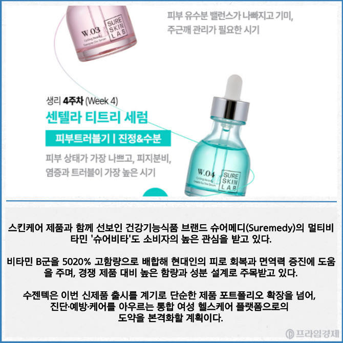 수젠텍은 자사 브랜드 슈어스킨랩(SureskinLAB)의 '사이클링 뷰티 세럼'이 국내 헬스앤뷰티(H&M)채널 진출 이후 주목받으며 중동·일본 등 해외 시장에서 현지 유통사들의 러브콜이 이어지고 있다고 3일 밝혔다.