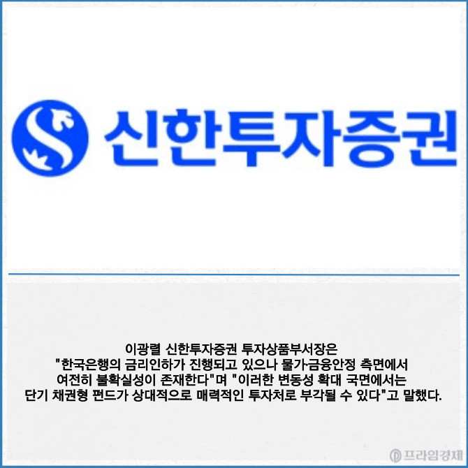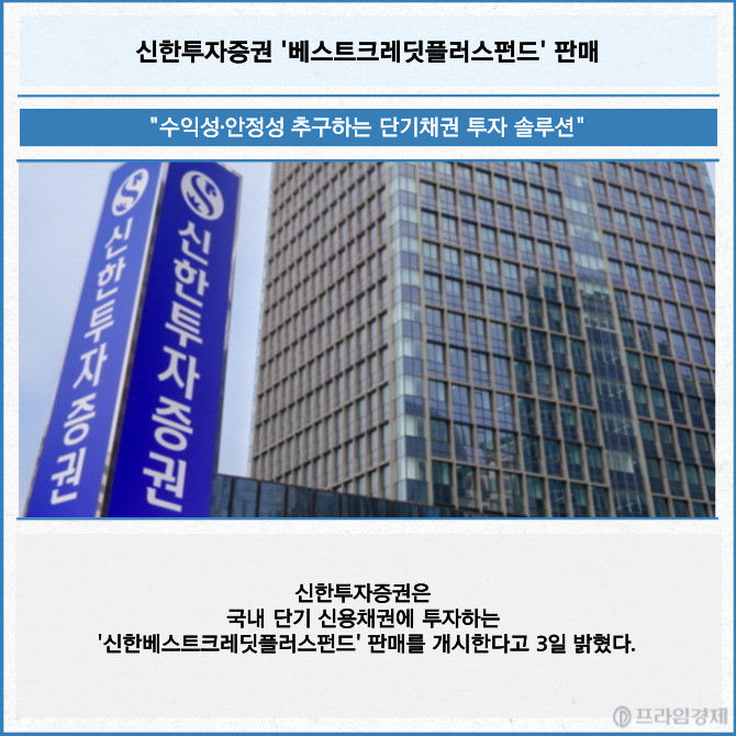 [프라임경제] 신한투자증권은 국내 단기 신용채권에 투자하는 '신한베스트크레딧플러스펀드' 판매를 개시한다고 3일 밝혔다.