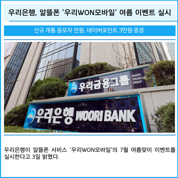 [카드] 우리은행, 알뜰폰 '우리WON모바일' 여름 이벤트 실시