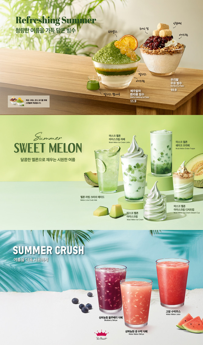 '꿀수박주스', '수박화채스무디', '팥빙 젤라또 파르페', '망빙 젤라또 파르페'는 여름철 베스트셀러 메뉴로, 시즌 한정으로 지속 판매될 예정이다. 또한, 식사 대용으로 든든하게 즐길 수 있는 '멕시칸 미트칠리 핫도그'와 '에그베이컨 모닝 버거'도 함께 선보인다.