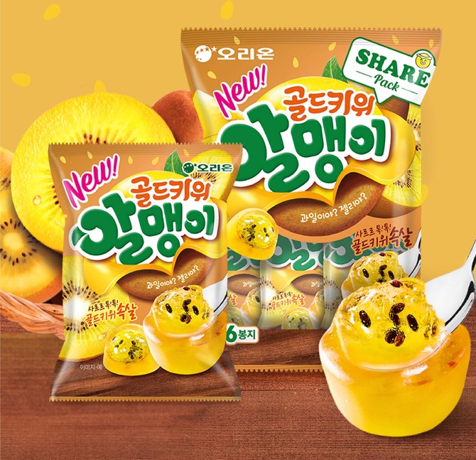 오리온(271560)은 골드키위의 맛과 모양을 그대로 구현한 젤리 신제품 '골드키위알맹이'를 출시했다.
