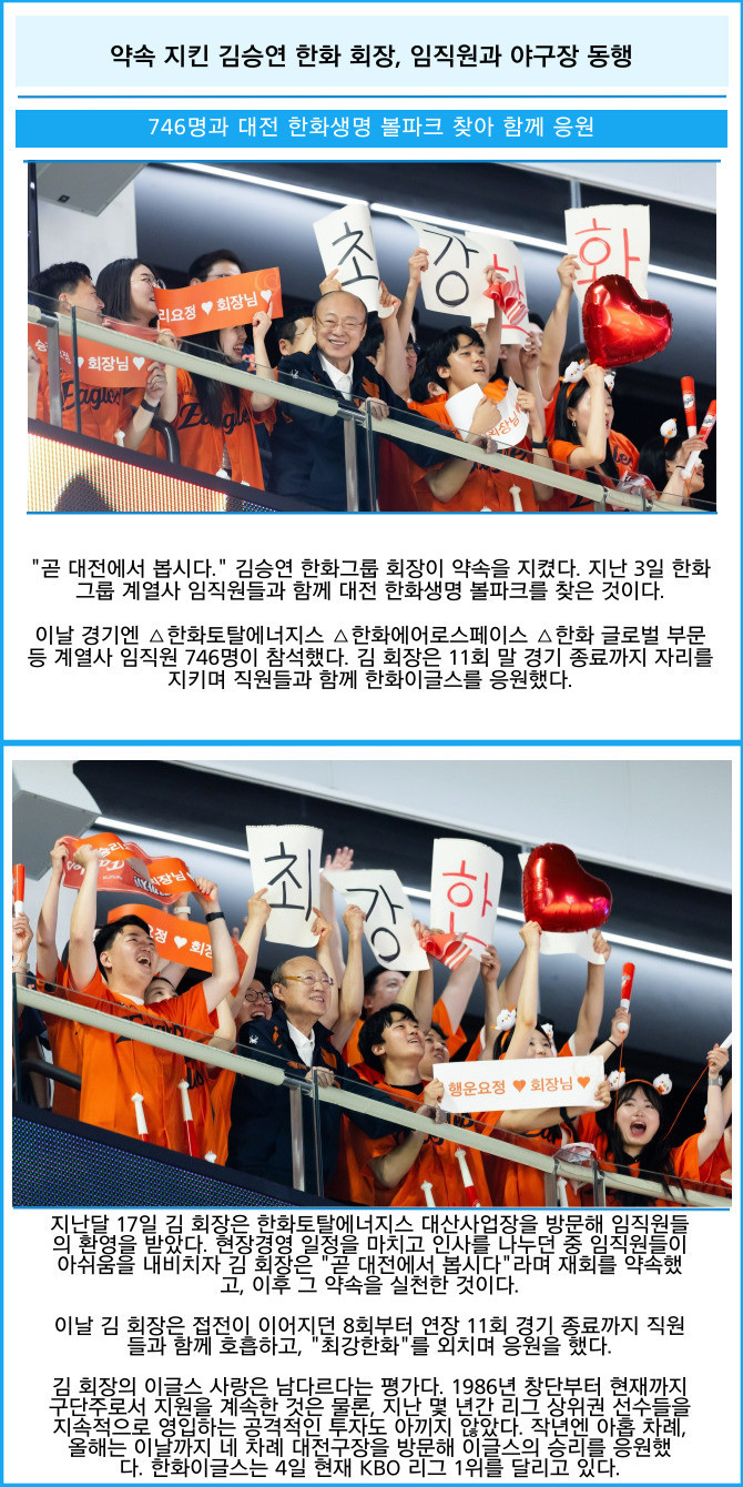 [카드] 약속 지킨 김승연 한화 회장, 임직원과 야구장 동행