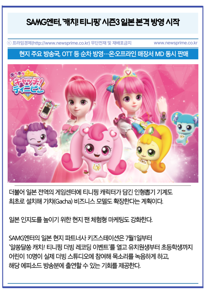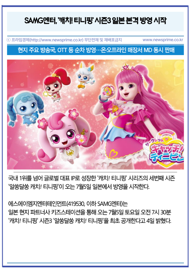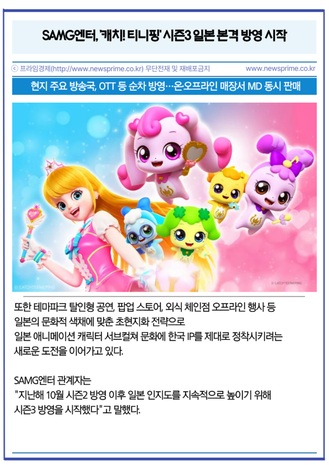 [카드] SAMG엔터, '캐치! 티니핑' 시즌3 일본 본격 방영 시작