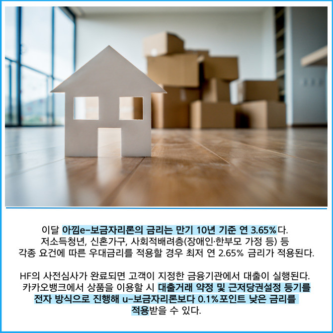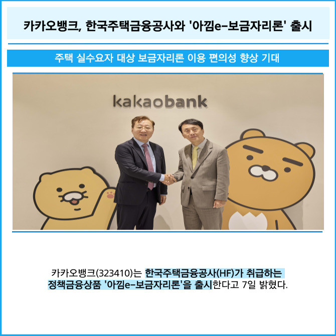 [프라임경제] 카카오뱅크(323410)는 한국주택금융공사(HF)가 취급하는 정책금융상품 '아낌e-보금자리론'을 출시한다고 7일 밝혔다.
