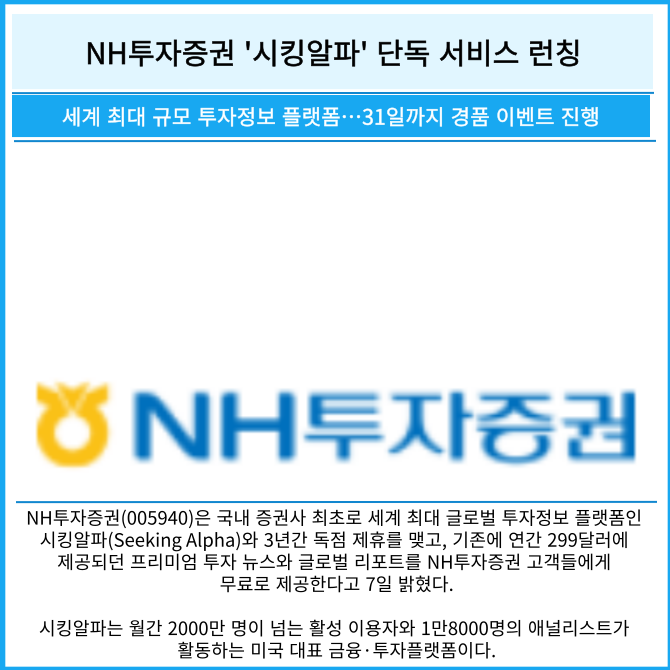 [카드] NH투자증권 '시킹알파' 단독 서비스 런칭