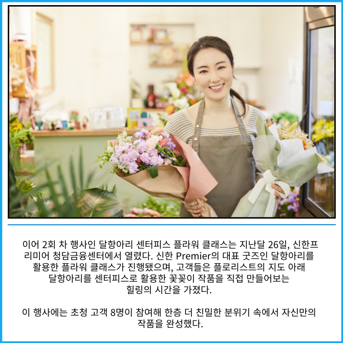 이번 행사는 신한금융그룹 자산관리 브랜드 '신한 Premier'의 고객 경험 차별화를 위해 기획한 콘텐츠로, 신한 Premier Hall의 공간을 활용한 문화 콘텐츠를 통해 고객들과 더욱 가까이 소통하고자 기획됐다.