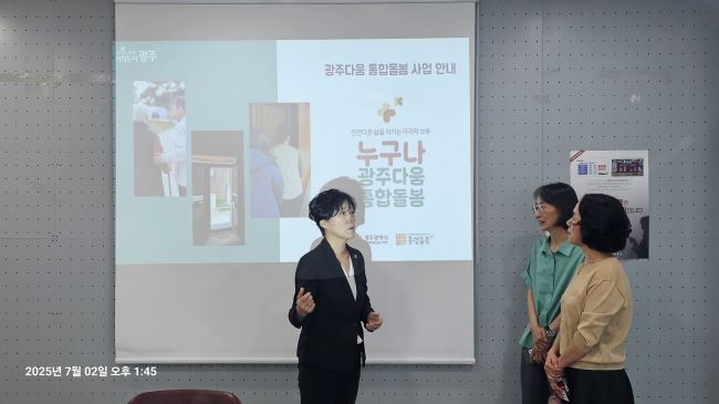광주광역시의 '광주다움 통합돌봄'은 2022년부터 제도 설계와 기반 마련을 시작해, 2023년 4월 본격적인 서비스를 개시했으며, 소득·연령·장애 유무와 관계없이 돌봄이 필요한 시민 누구나를 대상으로 하는 보편적 돌봄서비스다.
