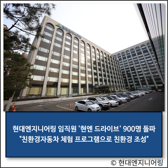 현대엔지니어링이 임직원을 대상으로 진행하고 있는 친환경자동차 체험 프로그램인 '현엔 드라이브'의 이용자 수가 이달 7일 900명을 돌파했다.