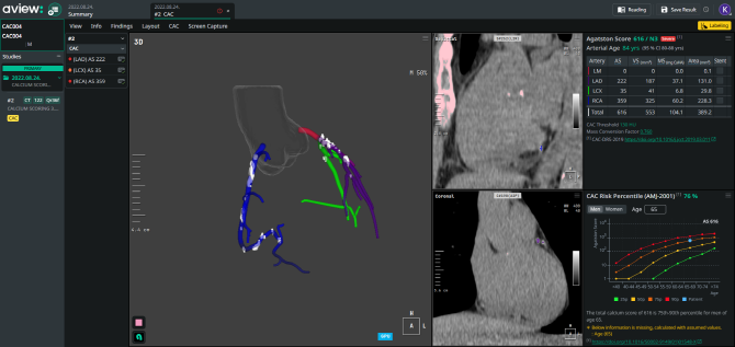 혁신제품으로 지정된 AVIEW CAC는 저선량 흉부 CT 한 번으로 관상동맥 석회화(CAC) 지수를 자동 정량 분석해 심혈관 질환의 위험을 선제적으로 평가할 수 있는 SW 제품이다. 국내 식약처 의료기기 3등급을 획득하며 의료 AI 진단 SW 기술적 수준과 안전성을 획득했고, 미국대학심장학회지 JACC에 성능 우수성이 발표됐다.