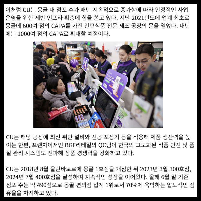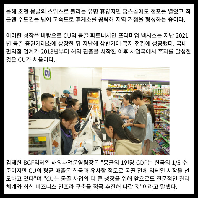[카드] CU, 몽골에 K-편의점 인프라 확대