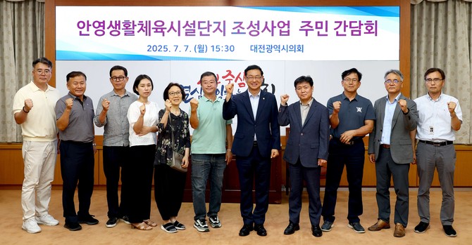 이날 간담회에는 대전시 체육건강국장, 예산담당관, 보상과장 등 관계 공무원과 지역 주민 7명이 참석했다. 간담회는 안영생활체육시설단지 사업의 전반적인 진행 상황과 예산 확보 현황에 대한 설명에 이어, 주민 의견을 청취하는 방식으로 진행됐다.