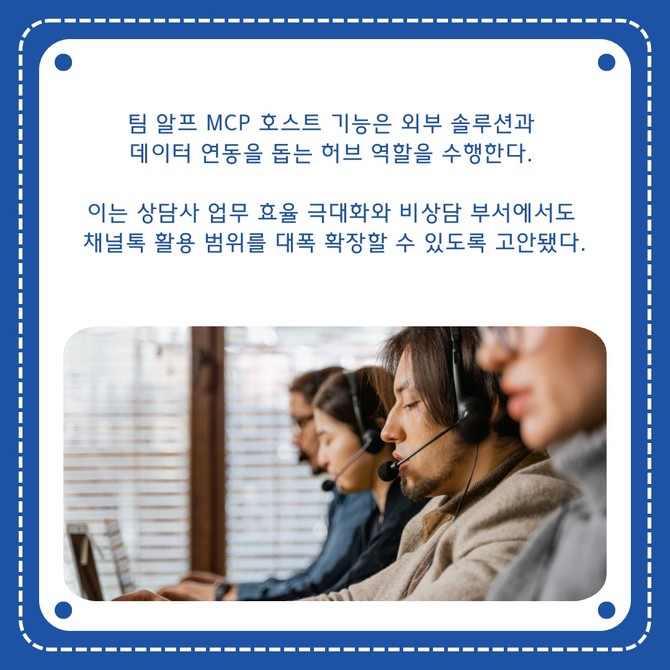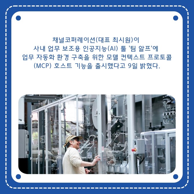 [프라임경제] 채널코퍼레이션(대표 최시원)이 사내 업무 보조용 인공지능(AI) 툴 '팀 알프'에 업무 자동화 환경 구축을 위한 모델 컨텍스트 프로토콜(MCP) 호스트 기능을 출시했다고 9일 밝혔다.