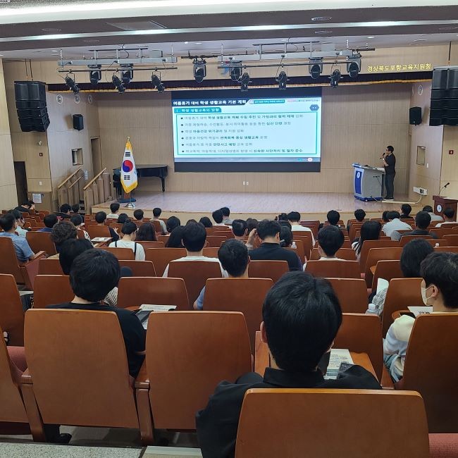 포항교육지원청은 지난 8일 관내 초·중·고등학교 생활안전부장을 대상으로 '2025 여름방학 대비 학생생활 교육 및 생명 존중 연수'를 실시했다.