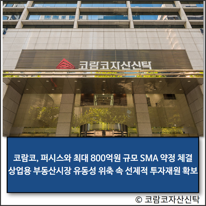 코람코자산신탁(이하 코람코)이 국내 대표적인 사무환경 전문기업 '퍼시스'와 최대 800억원 규모의 SMA(Separately Managed Account) 약정을 체결했다.