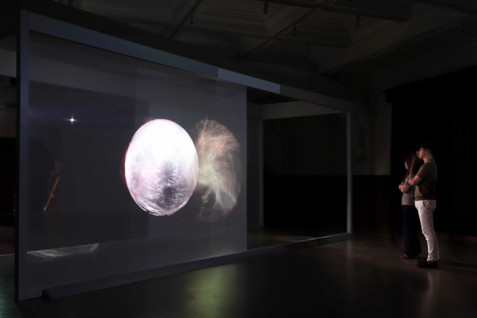 인간과 기계를 상징하는 두 개의 스크린에서는 이질적인 요소들이 생성되고 얽혀 하나의 공동체를 형성하는 과정을 다각도로 감상할 수 있다.