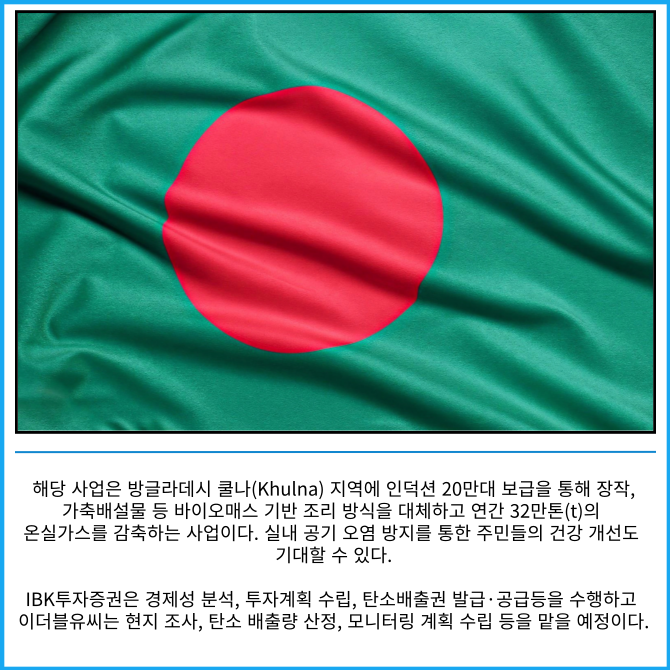 [카드] IBK투자증권 '탄소감축' 방글라데시 사업 참여
