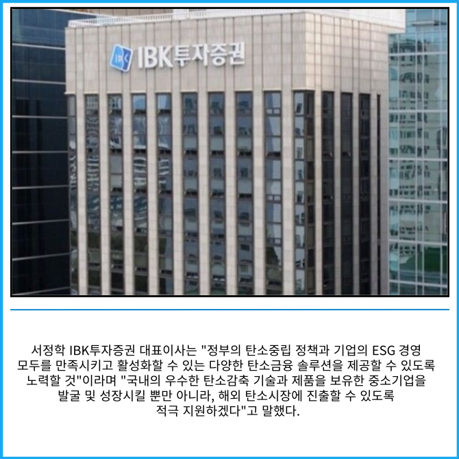 IBK투자증권은 이더블유씨와 함께 구성한 컨소시엄을 통해 지난 8일 산업부와 KOTRA가 진행하는 '2025년 온실가스 국제감축사업'의 타당성 조사 지원사업에 선정, 협약을 완료했다고 10일 밝혔다.