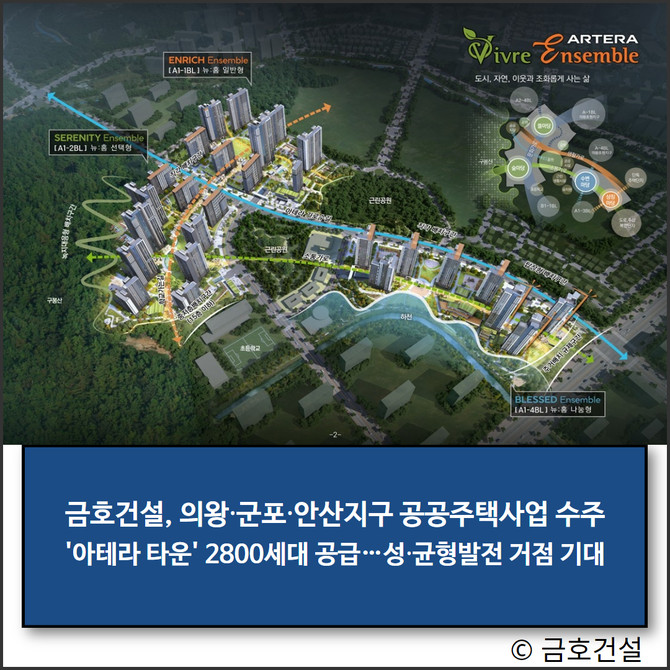 금호건설 관계자는 "금호건설 기술력과 사업관리 역량을 반영해 의왕군포안산 지구에 고품질 공공주택을 선보일 것"이라며 "이번 선정으로 민간참여 공공주택사업 분야 경쟁력을 다시 한번 입증할 수 있게 됐다"라고 전했다.