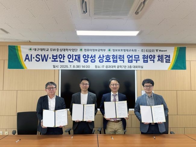 대구대학교가 사이버보안 전문기업 티오리한국(대표 박세준)과 손잡고 인공지능, 소프트웨어, 사이버보안 분야의 핵심 인재 양성을 위한 산학 협력에 나섰다.