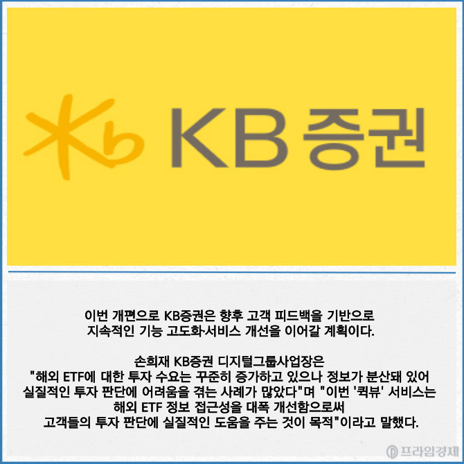 [카드] KB證, 해외ETF 핵심정보 한눈에 '퀵뷰' 오픈