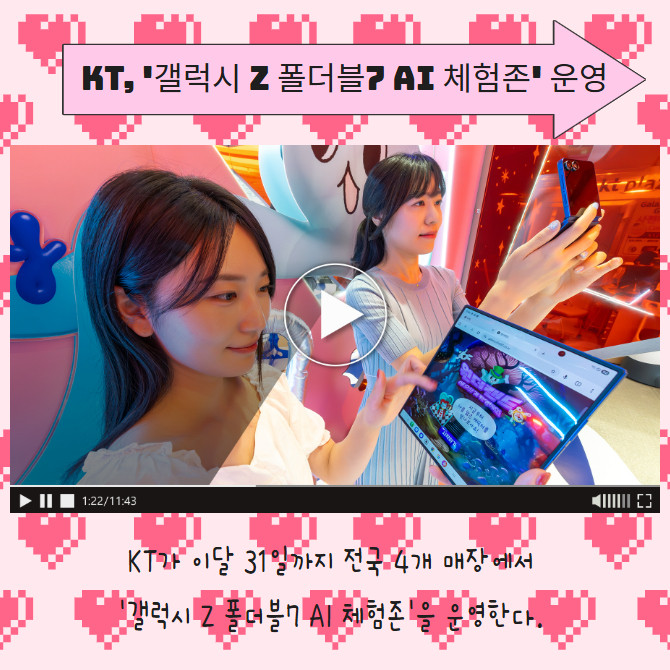 [프라임경제] KT(030200)는 오는 31일까지 전국 4개 매장에서 '갤럭시 Z 폴더블7 AI 체험존'을 운영한다고 11일 밝혔다. 체험존은 홍대 애드샵 플러스, 강남역 KT 애비뉴, 수원 KT 위즈파크점, KT플라자 동성로점에서 운영된다.