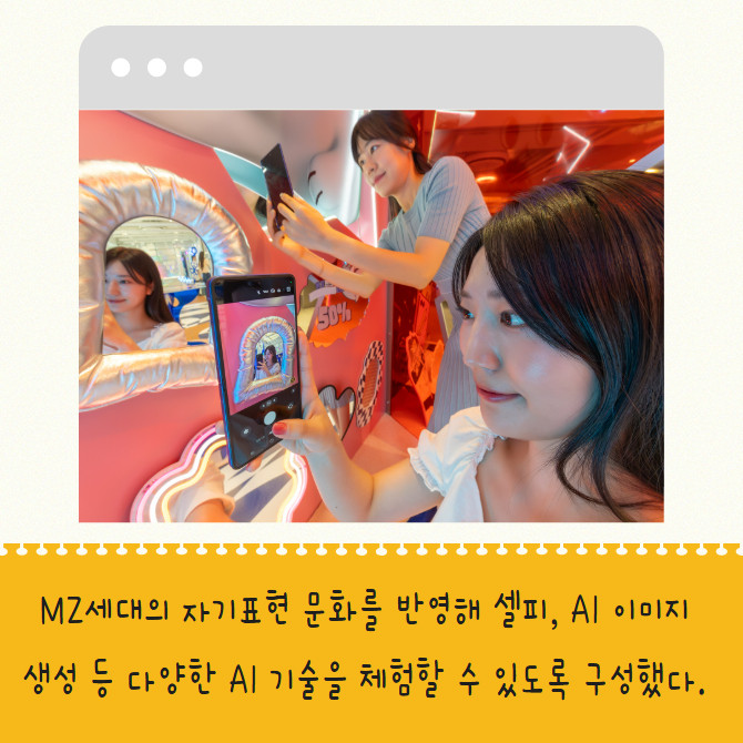 공간은 셀피, AI 이미지 생성 등 다양한 AI 기술을 체험할 수 있도록 구성했다. 이와 함께 지난 5월 높은 호응을 얻었던 '드림 AI 스튜디오'도 다시 운영한다. 고객이 셀피를 촬영하고 간단한 설문을 완료하면, AI가 이를 분석해 미래 모습을 시각화된 이미지로 제공한다.