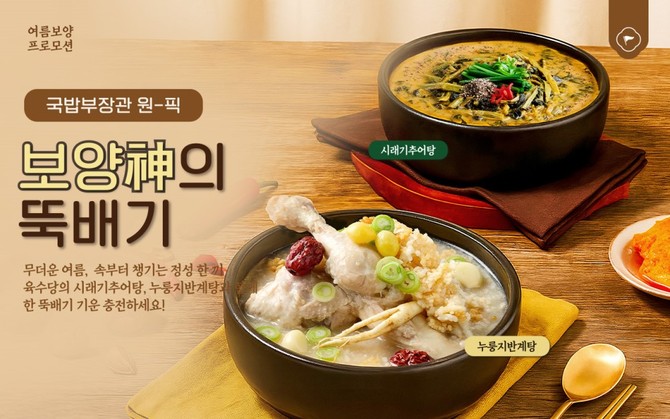 약 7주간 진행하는 이번 프로모션에서는 브랜드 대표 보양 메뉴 '누룽지반계탕'을 2000원 할인, 남도 전통 보양식 '시래기추어탕'을 1100원 할인된 가격에 판매한다.