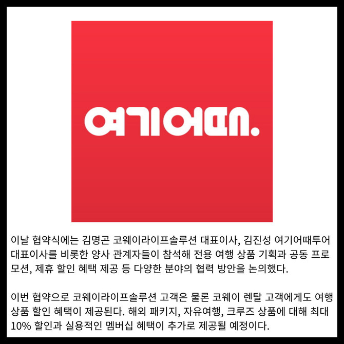 [카드] 코웨이라이프솔루션 '여기어때투어'와 파트너십 체결