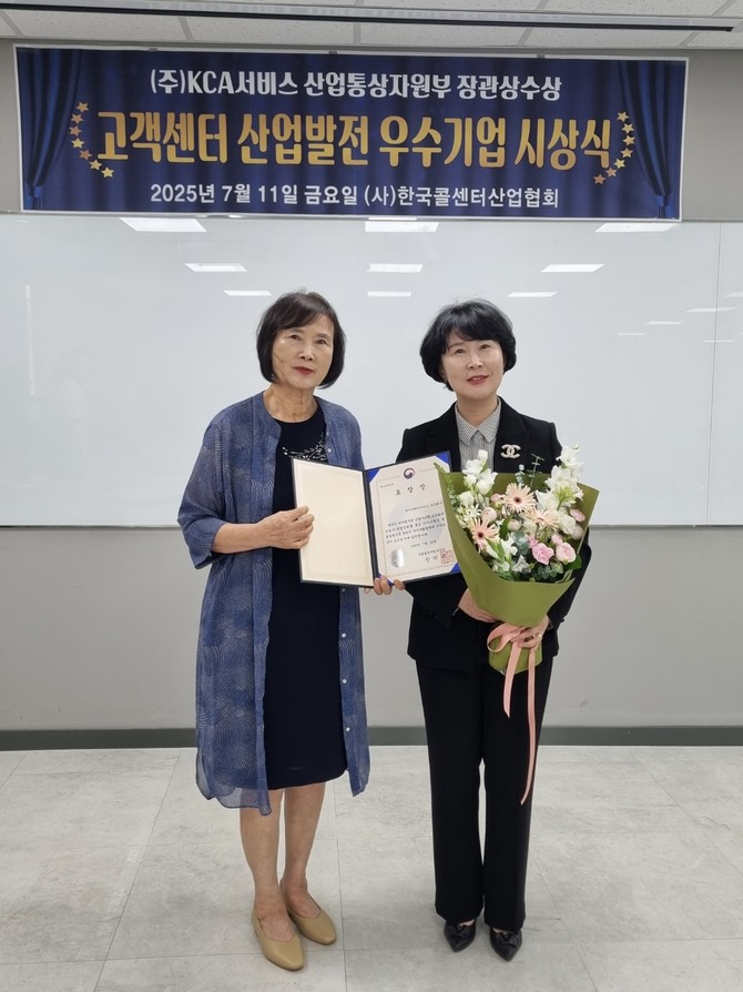 [프라임경제] KCA서비스(대표 김혜옥)가 디지털 기반 상담 시스템 고도화와 전문성 기반 경영 성과를 인정받아 '2025 콜센터 산업 발전 유공'에서 산업통상자원부 장관상을 지난 11일 수상했다.