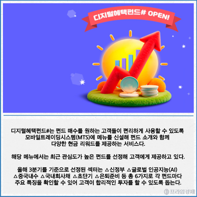 [프라임경제] DB증권(016610)은 '디지털혜택펀드# 오픈 기념 이벤트'를 오는 9월30일까지 실시한다고 14일 밝혔다.