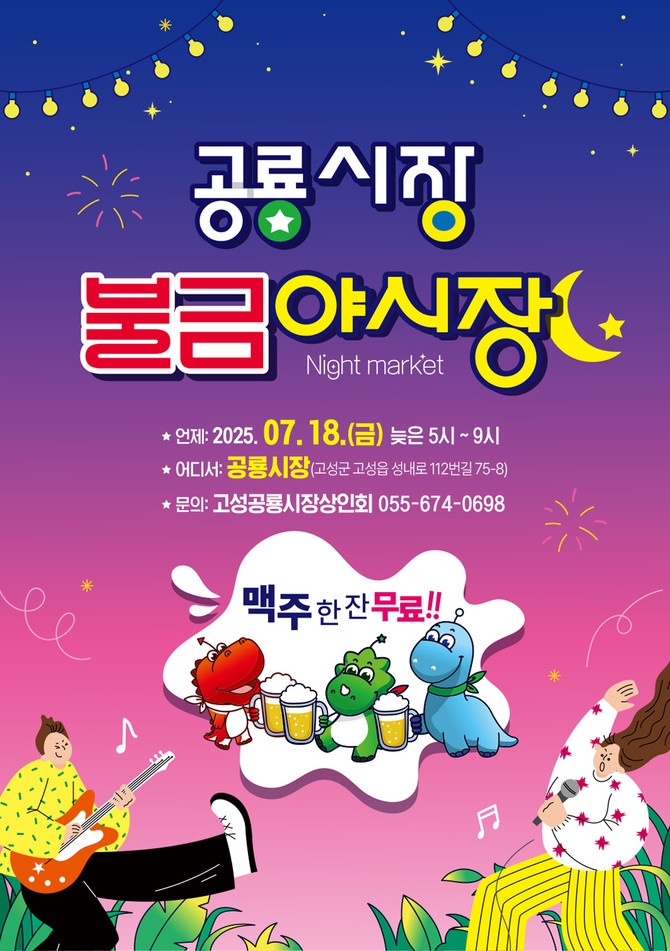 고성군은 오는 7월18일 고성공룡시장에서 제2회 '불금야시장'을 개최한다. 이번 행사는 '불타는 금요일, 공룡의 밤!'이라는 부제 아래, 지역주민과 방문객들에게 색다른 금요일 밤의 즐거움을 제공할 예정이다.
