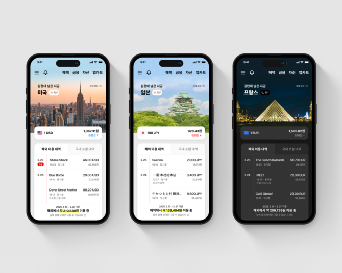 현지에서 이용할 수 있는 국가 별 다양한 제휴 서비스도 한 눈에 확인할 수 있다. 미국에서는 뉴욕현대미술관 무료 입장과 하와이 올로마나 골프장 할인 혜택이, 일본에서는 츠타야 서점과 돈키호테 등에서 이용할 수 있는 일본 제휴 서비스가, 대만에서는 라인페이로 결제가, 프랑스에서는 몽쥬 약국 할인 등이 노출돼 일일이 찾아보지 않아도 현지에서 이용 가능한 서비스를 알 수 있다.