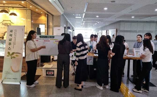 이번 시음회는 진주시가 지원하고 (재)장애인기업종합지원센터 경남센터가 운영 중인 특화사업장 '가치만드소'의 새싹삼 제품에 대한 시민 반응을 확인하고 공공소비 기반을 마련하기 위한 자리로, 공공형 카페 관계자·시민·시직원 100여명이 참여해 뜨거운 호응을 얻었다.