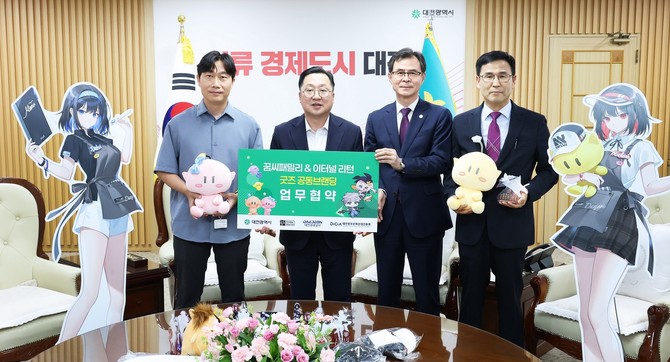 시는 14일 오후 3시 시청 응접실에서 ㈜님블뉴런, 대전관광공사, 대전정보문화산업진흥원과 함께 '꿈씨패밀리-이터널 리턴 굿즈 공동브랜딩'을 위한 4자 업무협약을 체결했다.