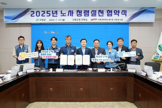 [프라임경제] 고령군(군수 이남철)은 14일 군청 우륵실에서 공직사회의 부패를 근절하고 청렴하고 공정한 조직문화를 조성하기 위해 '2025년 노사 청렴실천 협약식'을 개최했다.
