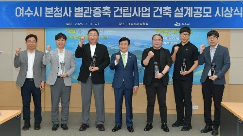 지난 11일 여수시(시장 정기명)는 시청 상황실에서 ㈜아이에스피 건축사사무소 이주경 대표를 비롯해 입상한 5개 업체의 건축사사무소 관계자들이 참석한 가운데 '여수시 본청사 별관 증축 건립사업' 설계공모를 실시했다. 이날 ㈜아이에스피 건축사사무소와 ㈜길종합건축사사무소이엔지가 공동 출품한 작품이 당선됐다. 여수시 본청사 별관 증축 건립사업은 현 청사 뒤편 주차장 부지에 622억원의 사업비를 들여 지하 2층 지상 6층, 연면적 1만7492㎡ 규모로 조성해 내년 초 착공해 2028년 개관을 목표로 하고 있다.