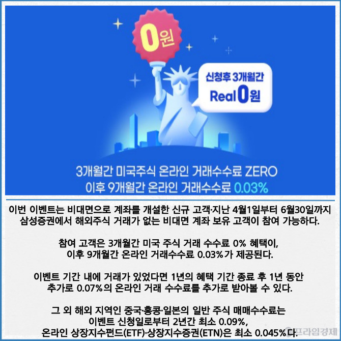 [카드] 삼성증권 '미국주식 수수료 0%' 혜택